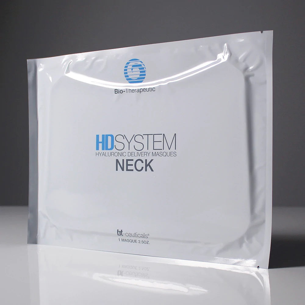 HD Neck Masque er en meget fuktighetsgivende maske til halspartiet som jevner hudtonen, virker beroligende og reduserer synligheten av fine linjer og rynker. Passer for en normal, tørr eller dehydrert hud. Perfekt å kombinere med BT-accent LED i behandling.