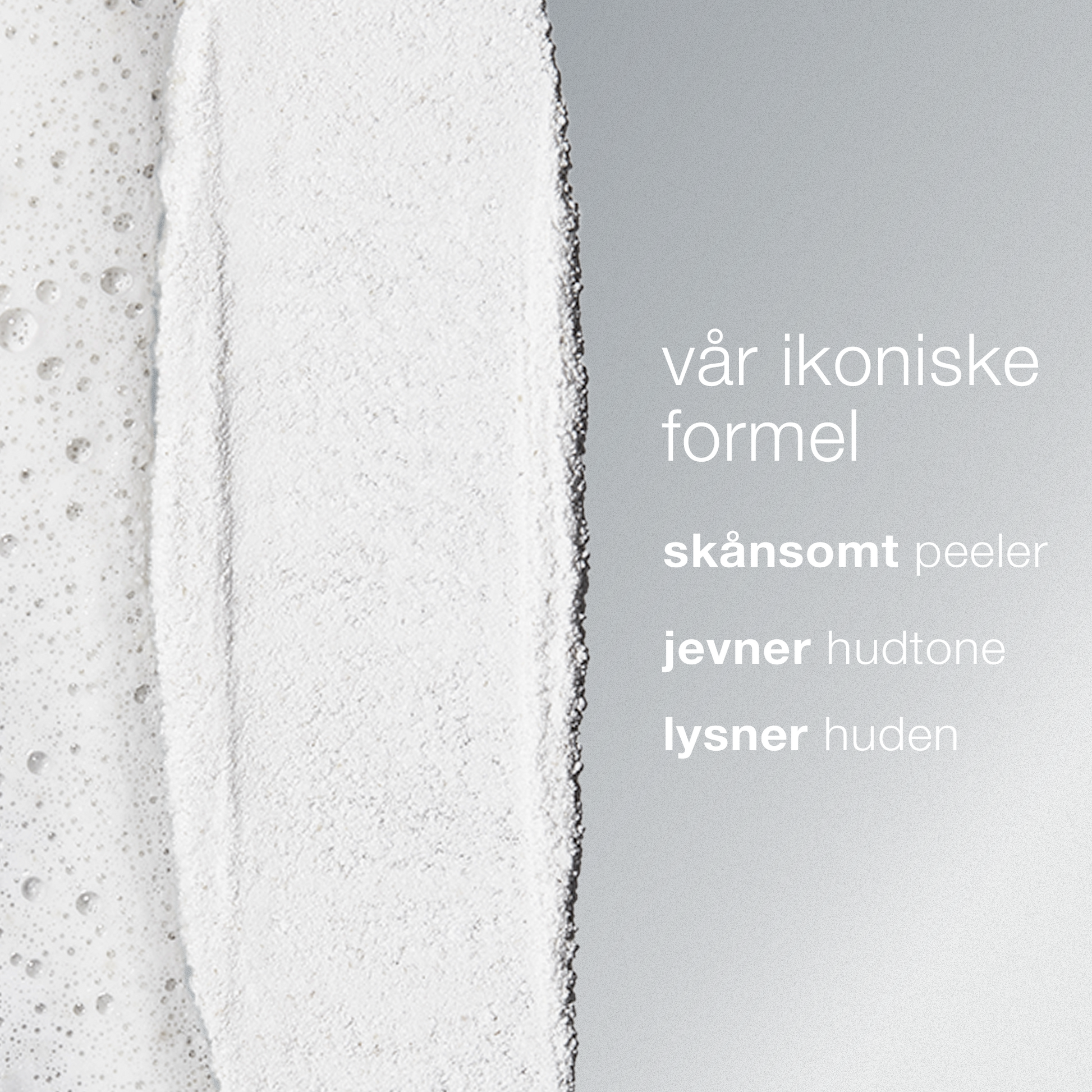 Når pulveret blandes med vann, frigjøres Papain, Salisylsyre og Risenzymer som jobber sammen for å polere huden skånsomt, men effektivt. Vårt Skin Brightening Complex med Phytic Acid fra ris, hvit te og lakrisrot, reduserer ujevnheter og fremmer en lysere hudtone. Samtidig roer kolloidalt havremel og allantoin ned huden, slik at den føles myk, balansert og sunn – hver eneste dag.