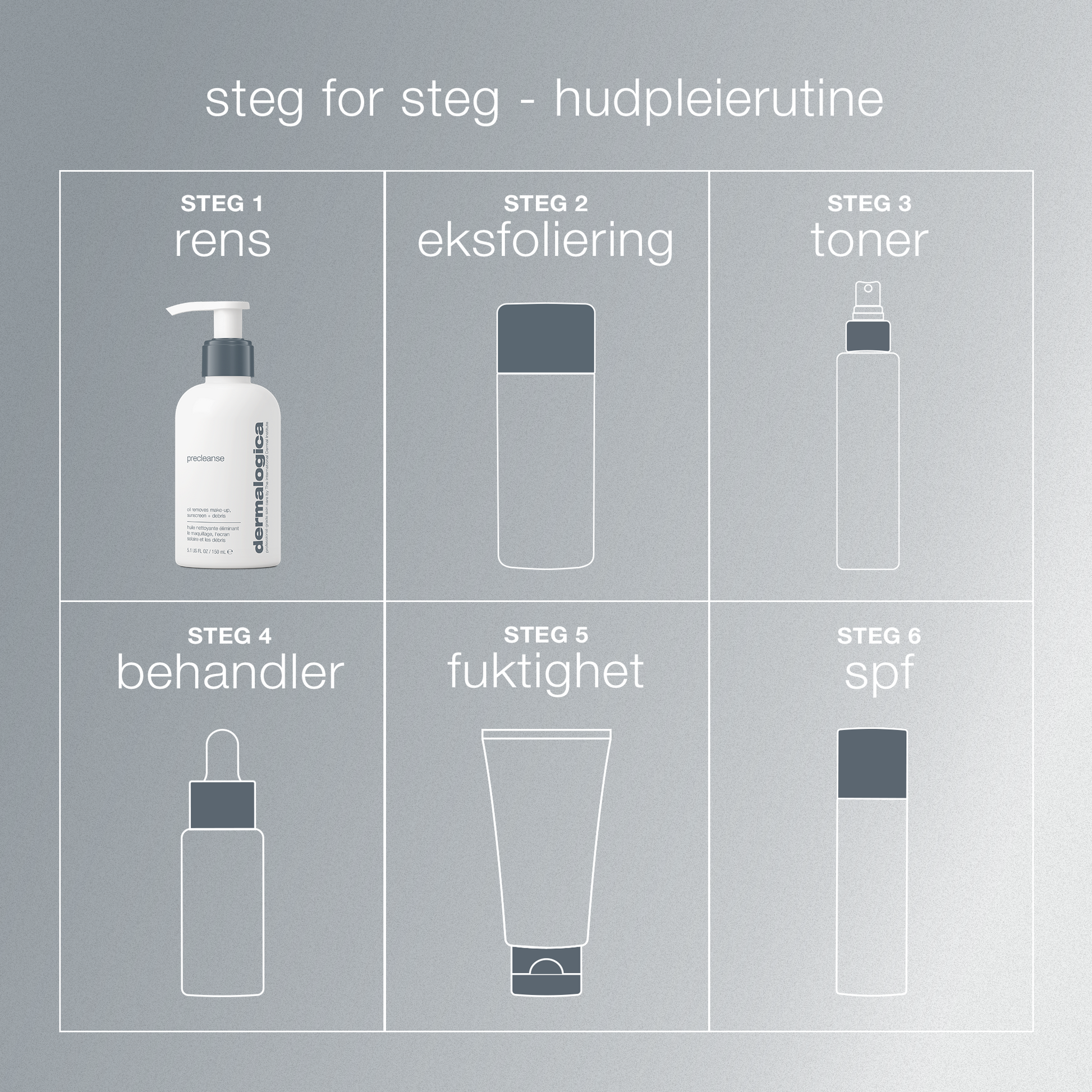 PreCleanse er en dyprensende olje som effektivt smelter bort sminke, solkrem og urenheter – selv vannfast sminke. Rensen fjerner lag av overflødig talg, miljøforurensning og rester av hudpleieprodukter som bygger seg opp i løpet av dagen. Dermalogicas dobbeltrens er vår profesjonelle teknikk for å oppnå en helt ren og klar hud.